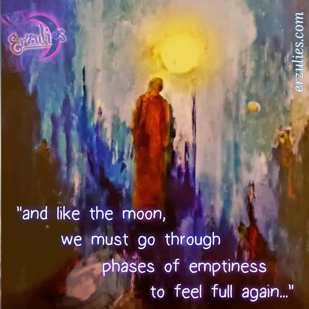 Posted Mar. 2019 ~ Emptiness…for those having feelings of emptiness…this is part of the transformative process and confirms you are transitioning to new levels, new directions and new territories. Shedding the old ideals, environment, routines, connections and energies: all to make way for this new phase in your life. While these feelings are uncomfortable and often times, bring up many dormant, unresolved areas buried deep within, it is necessary. It is also temporary. This phase of emptiness removes those carefully constructed barriers from our old ways of being, to discover new passions or uncover a new purpose, which leads us to our destiny. “Your vision will become clear only when you look into your heart. Who looks outside, dreams. Who looks inside, AWAKENS!” ~ Jung. This one is also for my beautiful, fashionista friend in London, Ms. Elizabeth M. who is bravely walking down these uncertain roads…the moonlight will guide your way!! I promise!