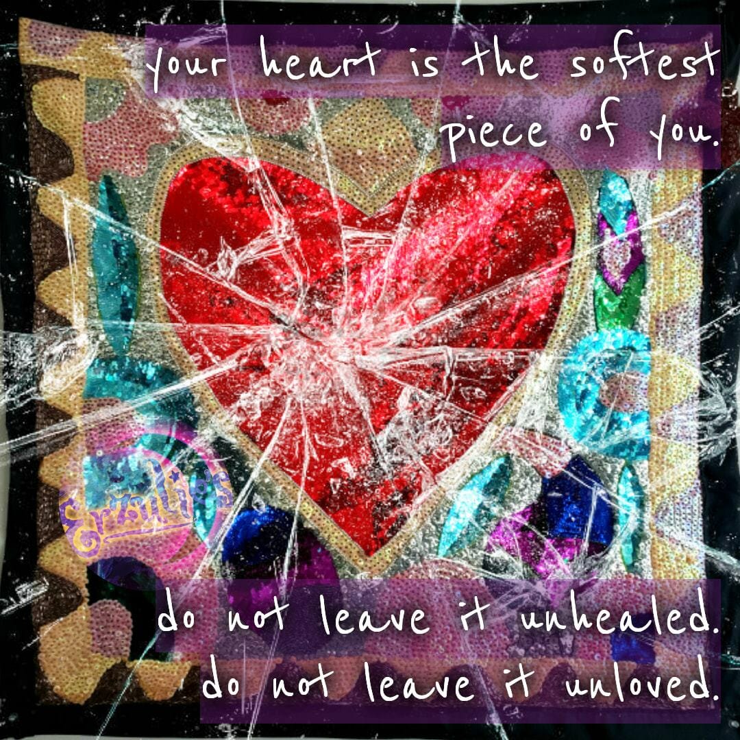 Posted Sept. 2019 ~ I’m using one of my most favorite and sacred Vodou drapos on my altar for Erzulie-Freda to convey this much needed reminder about our hearts. We often get so trapped in replaying the hurts, betrayals, unconscionable behaviors and all the heartbreaks we’ve endured, we can remain brittle, hard and shattered; closed off to the love around us. I see this every day in my spiritual consultations, a once loving, genuine and generous soul, has shut down entirely due painful heartbreak. And, while during the grieving process this is natural, to live an amazing and fulfilling life, it is not a place we can dwell too long. Try to focus on those unhealed and unloved parts of your heart and start your recovery process. Healing comes opening your heart, and softening those razor-sharp fragments that won’t let the love in. Stay soft…it brings so much more healing and joy and…it looks so beautiful on you.