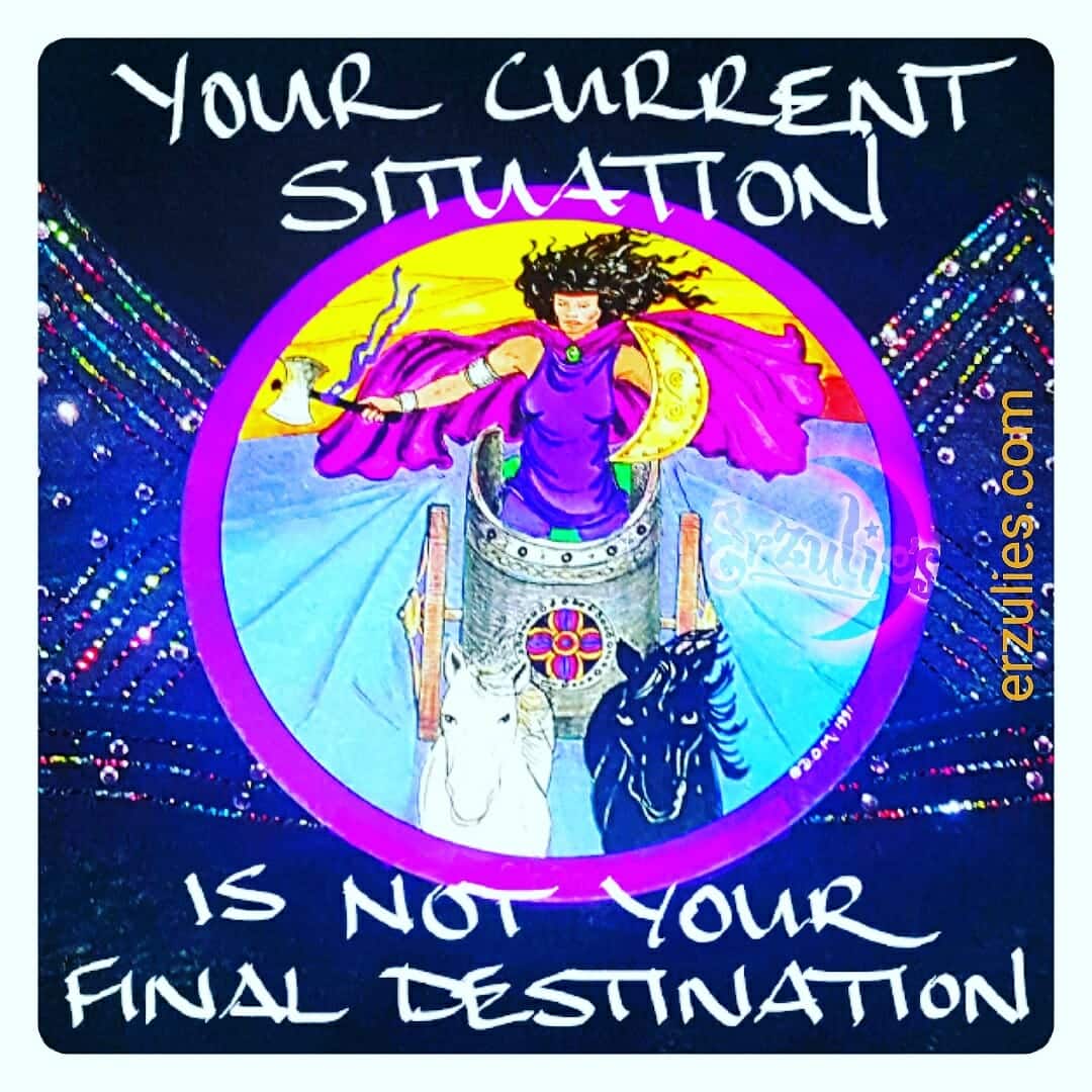 Posted July 2017 ~ Bold changes in your current situation begins today! In honor of the new moon, I selected one of my favorite images from my Daughter’s of the Moon Deck ~ this is the time to unequivocally decide to either DO something, or, STOP doing something…choose wisely: as your choices today determine the quality of your life, joy, happiness, dreams, goals and resolution to current conflicts for a long time to come. For your situation to change, you have to change something, try something different: even if it only means surrender and letting go. Your chariot has arrived and your future is waiting…jump aboard folks and keep it moving!