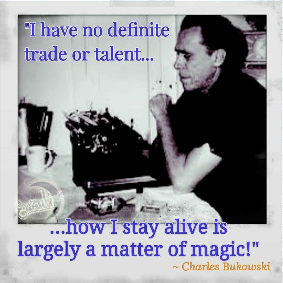 Posted Aug. 2018 ~ I’ve always said, magic works when nothing else can! Even if nothing else seems to be working, your magic can and will! I was reading Ham on Rye last night and it reminded me of this quote by one of my fave authors & poet, the brilliant Charles Bukowski. There is a time when we spiritual, creative, artistic and musical souls question everything. Question our place in this world, question our gifts, question our vision, question if we even belong in this space and time. We have chosen a road much less traveled. A road most around us don’t resonate with, and feels, that even fewer understand. It can make us feel uncertain, discouraged, misunderstood and at times isolating, because there is simply no blueprint or road map to see the why’s and how’s. And that’s ok…there isn’t supposed to be, that is precisely why you have YOUR magic, to guide YOU on your path and share your unique gifts with the world. So, for all my loved ones and friends out there who decorate our lives with their art, our time with their music and our souls with their words, you are absolutely pure magic…this one is for you! Don’t ever settle for anything less than the magic in you and in your life…