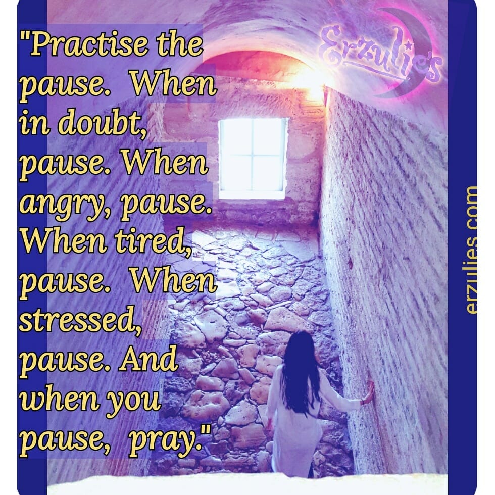 Posted June 2017 ~ Practising the pause…pausing is usually the key to genuine awareness and understanding of any conflict or distressing situation. Pausing prevents irrevocable reactions we are all so prone to displaying; which never serves to resolve the matter. Stop reacting, start pausing ~ give yourself the space to reflect on what is actually happening and where the root of the issue is coming from…and when you pause, pray…for as above, so below.